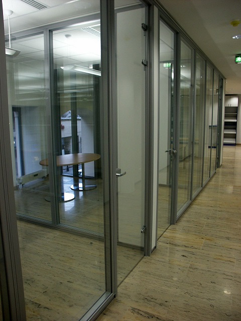 Ganzglastrennwände, als Stahl- (Magnetflächen) oder Holzwände (mit einer